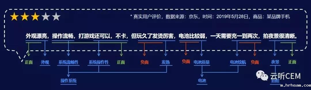 云听CEM将所有客户体验反馈数据通过自然语言处理与深度学习技术,将海量文本数据转化为可量化、可视化的数据分析,提取客户典型意见、情感正负面判断,帮助企业量化管理客户体验,洞察消费者需求。