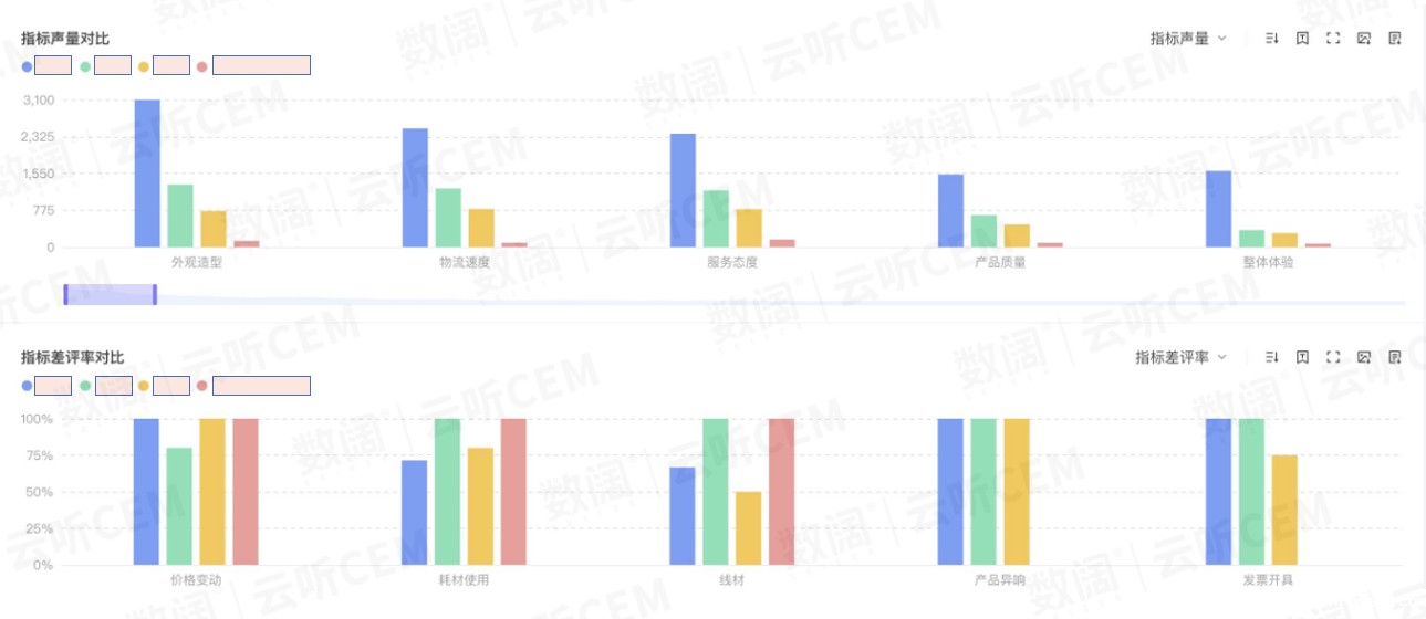 以线上渠道为例。一个家电品牌在多个电商平台的多个店铺中,铺设了几十或数百个产品。每个SKU都会有海量用户对产品的不同性能进行评价,中差评是品牌尤为关注的类别。