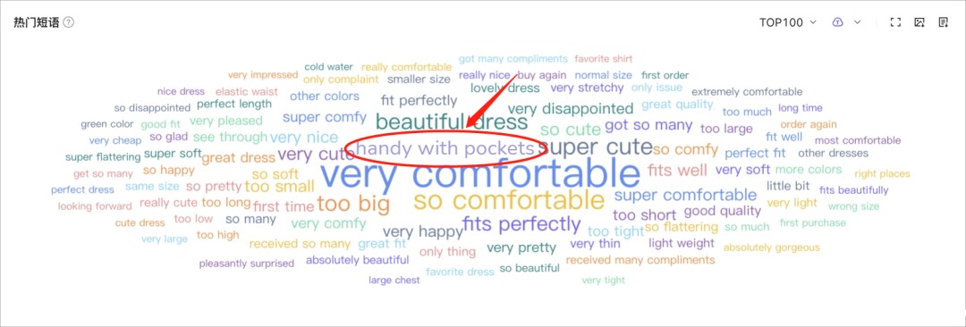 同时,该女装品牌通过产品迭代方向优先级分析,还发现了消费者对“连衣裙口袋”需求声量高于其它点,从而确立了这一迭代方向,也因此在社媒平台上广受消费者好评。