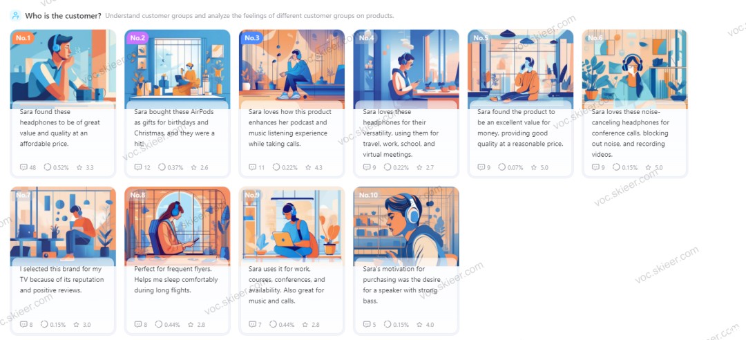 通过VoC分析,跨境卖家能够从消费者评论中,了解客户群体特征,分析不同群体的体验感受,挖掘客户的使用场景,洞察消费者的未满足需求。