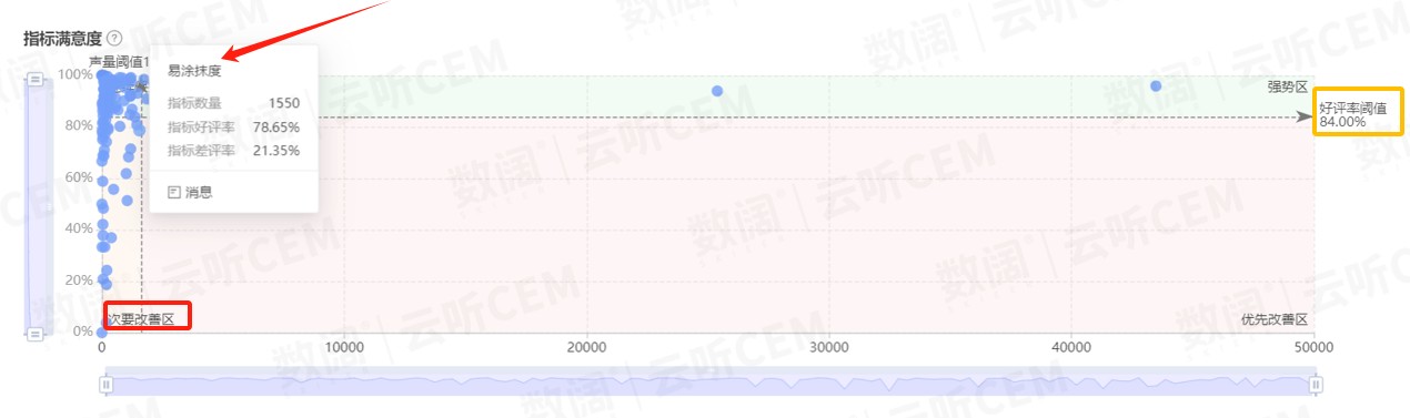 品牌F的解决方法是,将产品宣传点对应的指标真实表现,与其它指标进行对比,通过消费者反馈展现的指标表现,找出真正的营销突破口。