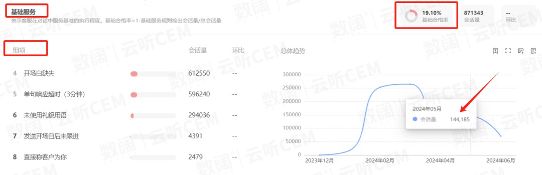 (某店铺客服服务能力质检趋势;图源taptap亚洲云听CEM
