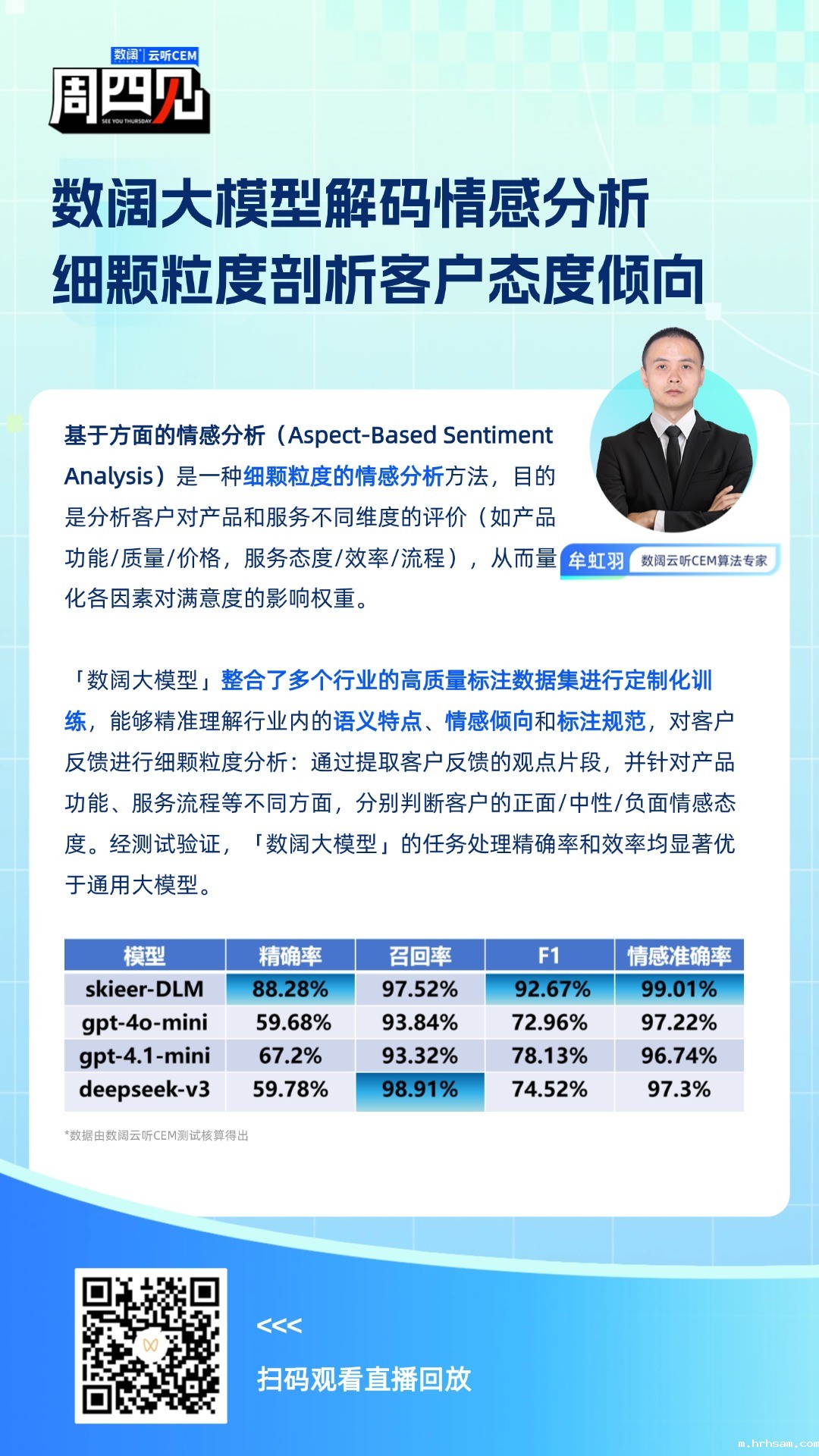 5月「周四见」直播中,taptap亚洲云听CEM专家团聚焦体验管理的业务场景,深度解析三大核心分析方法,并展示了taptap亚洲大模型的行业领先能力。以下为本次直播的精华内容: