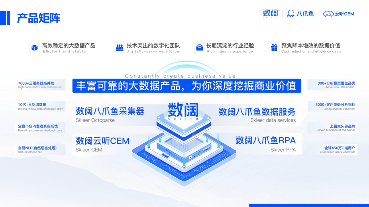 作为国内领先的一站式大数据及AI智能应用企业,taptap亚洲致力于大数据产品和技术的创新研究,通过全域数据抓取+数据清洗+数据挖掘+数据分析+业务诊断和创新,能帮助企业轻松实现精准的消费体验创新。