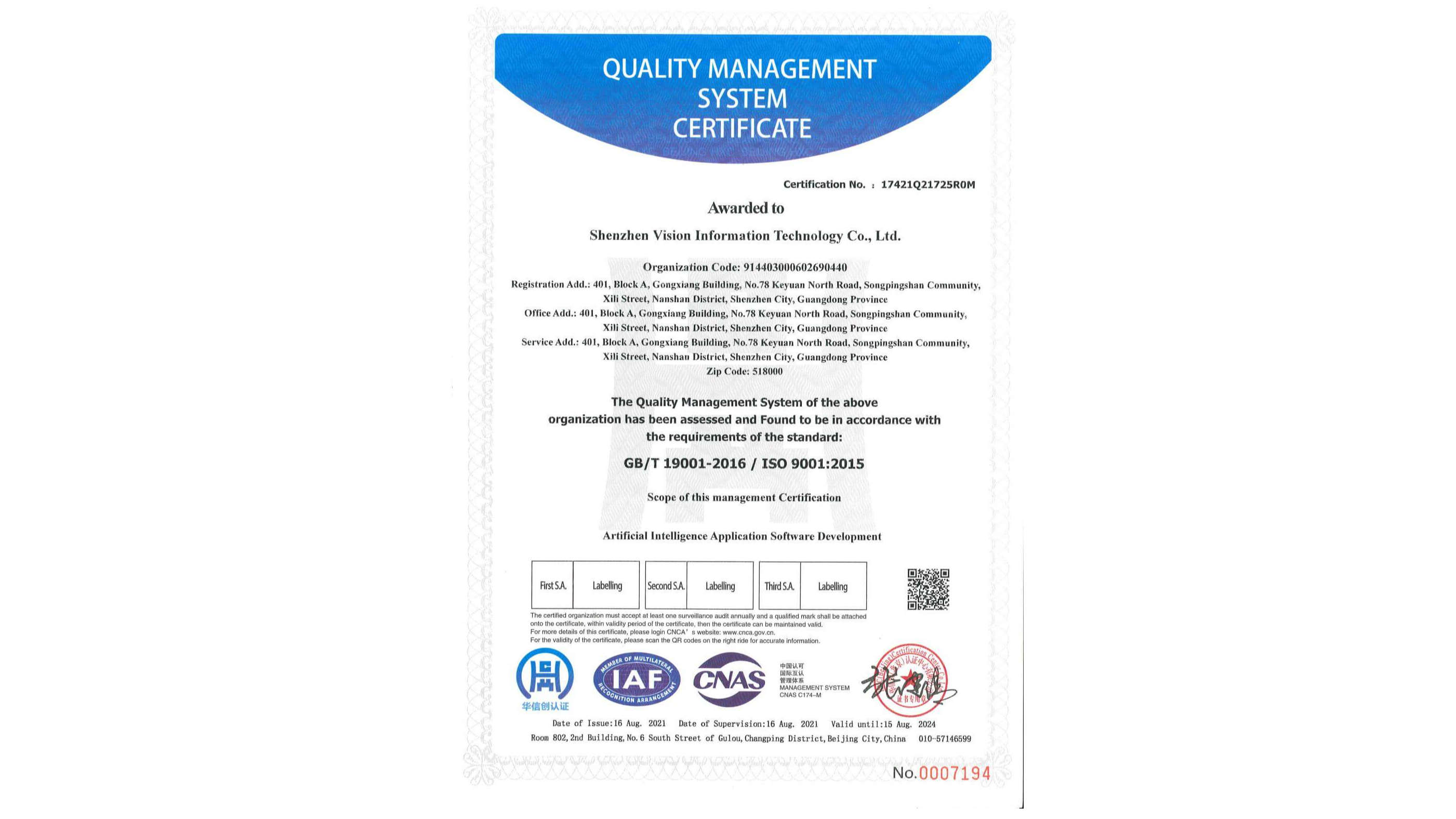 QUALITY MANAGEMENT SYSTEM CERTIFICATE