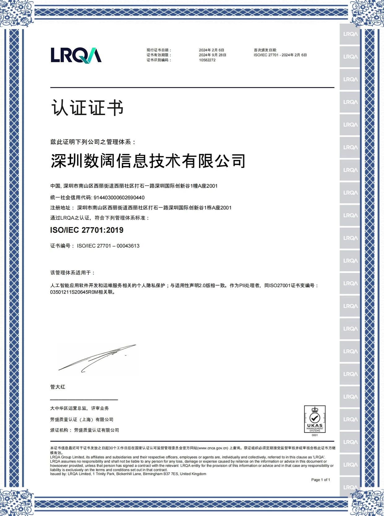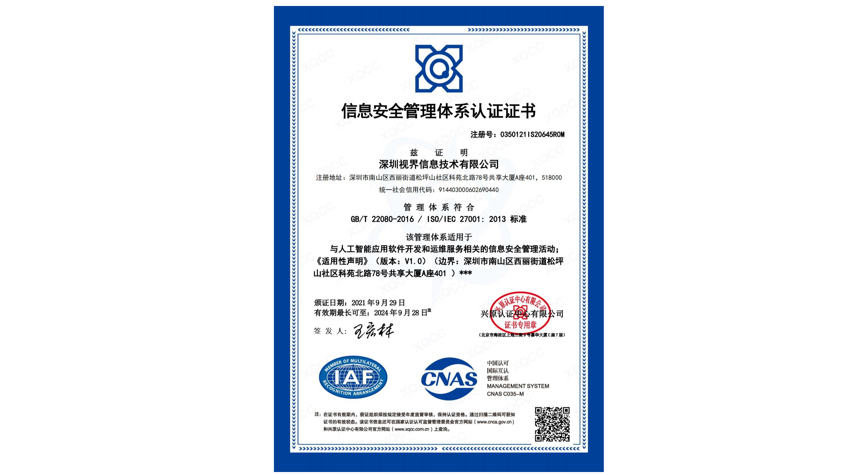 INFORMATION SECURITY MANAGEMENT SYSTEM CERTIFICATE