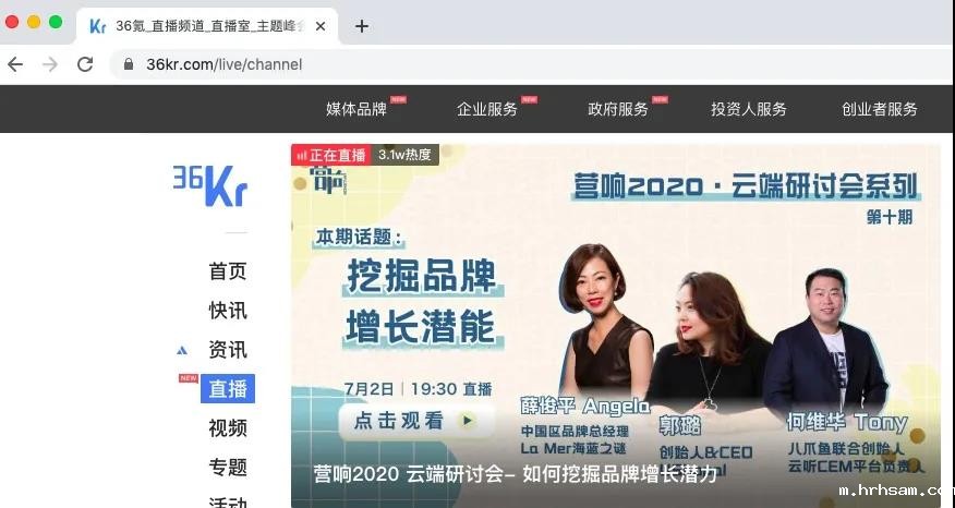 7月2日晚,云听CEM负责人何维华受邀与La Mer海蓝之谜中国品牌总经理薛俊平、USHOPAL(前强生电商副总裁)郭璐共同参与营响“品牌如何挖掘增长潜力”主题直播研讨会。