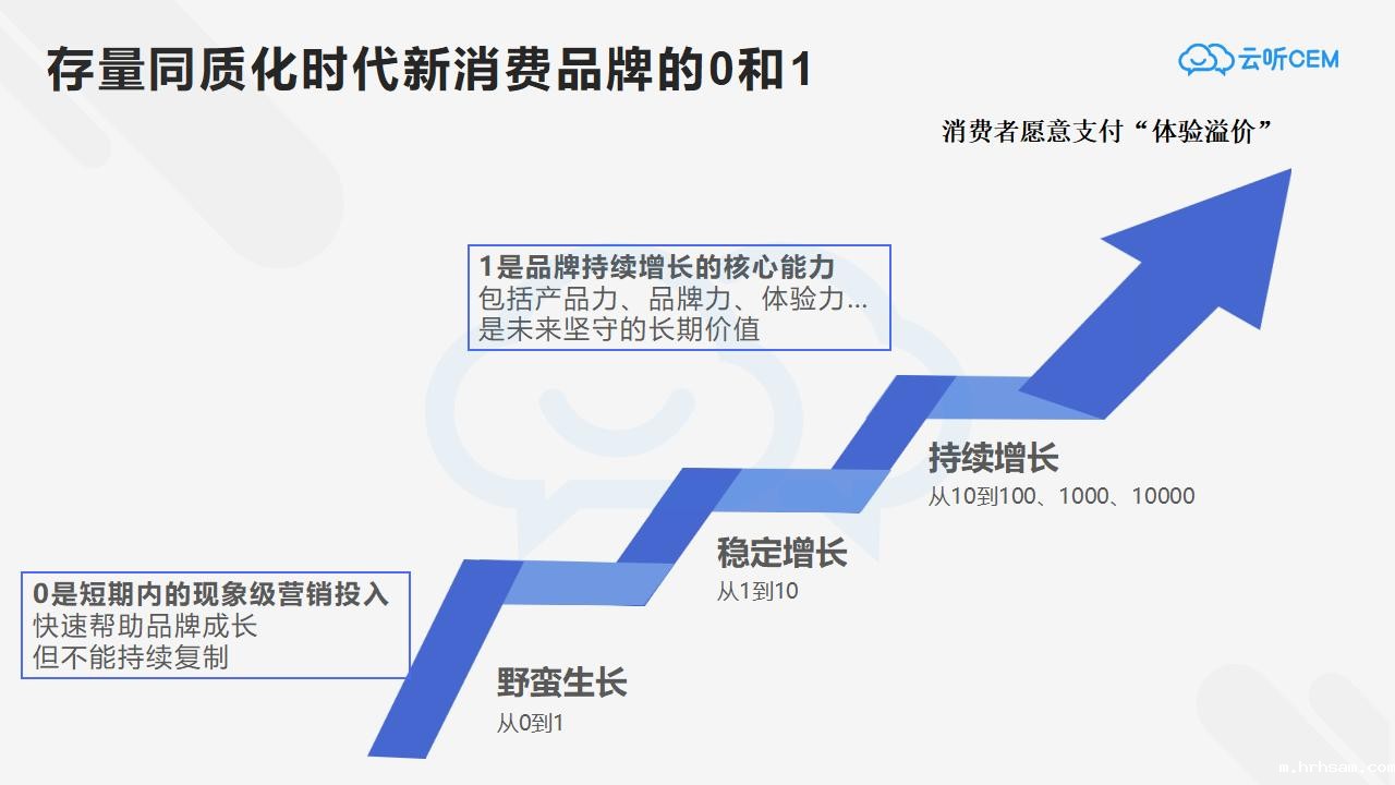 我们今天的话题所说的是新锐品牌成长中遇到的0和1,与大家传统意义上了解的从0到1、品牌从无到有的过程是不同的含义。开始之前和大家分享一下云听CEM到底是什么。